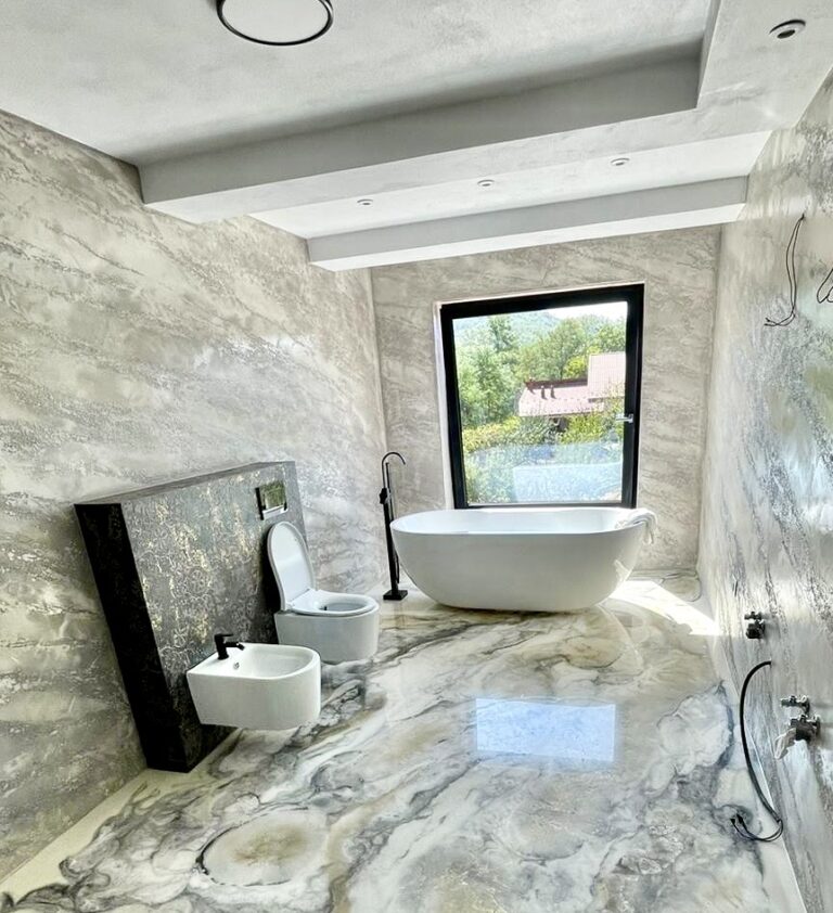 Microcimentul oferă un finisaj continuu, modern și rezistent, fără rosturi sau îmbinări, ideal pentru pardoseli, pereți, băi, bucătării și scări.